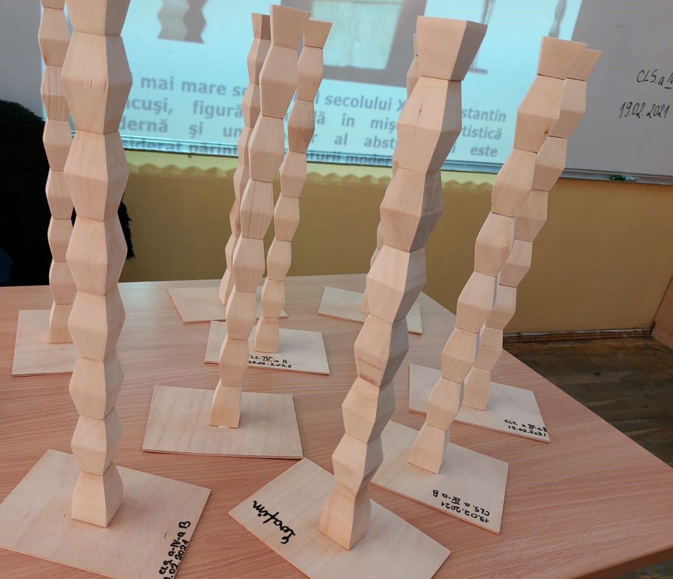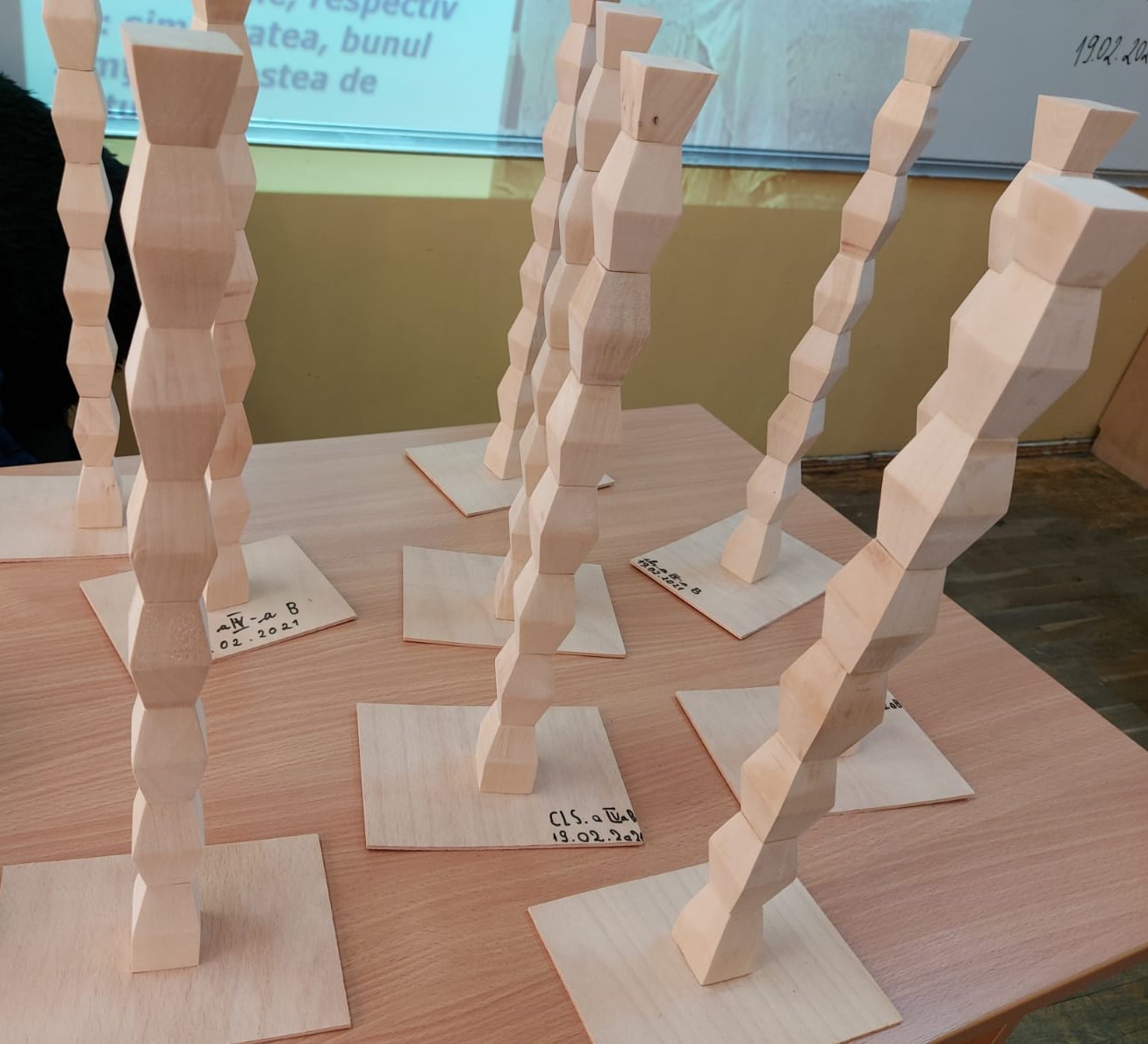 JOI – Ziua aceasta a fost aparte. Suntem Scoala Gimnaziala Constantin Brancusi, purtam numele marelui sculptor, iar pe 19 februarie il sarbatorim. Elevii mei sunt clasa a IV a, astfel ca mi-am putut permite sa realizez cu ei COLOANA INFINITULUI. De ce? Pentru ca fiecare dintre noi in viata noastra tindem sa atingem… propria coloana a infinitului. Anul acesta incheiem 5 ani minunati impreuna! Vreau sa le ramana amintiri durabile…Echipa noastra de exceptie insa va ramane la fel de unita si din a V a…