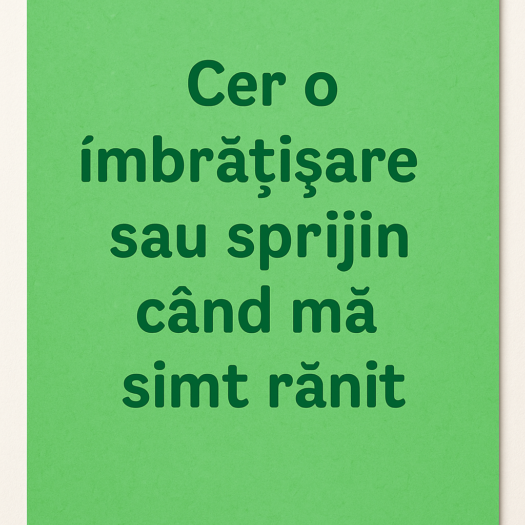 🟢 Cer o îmbrățișare sau sprijin când mă simt rănit.